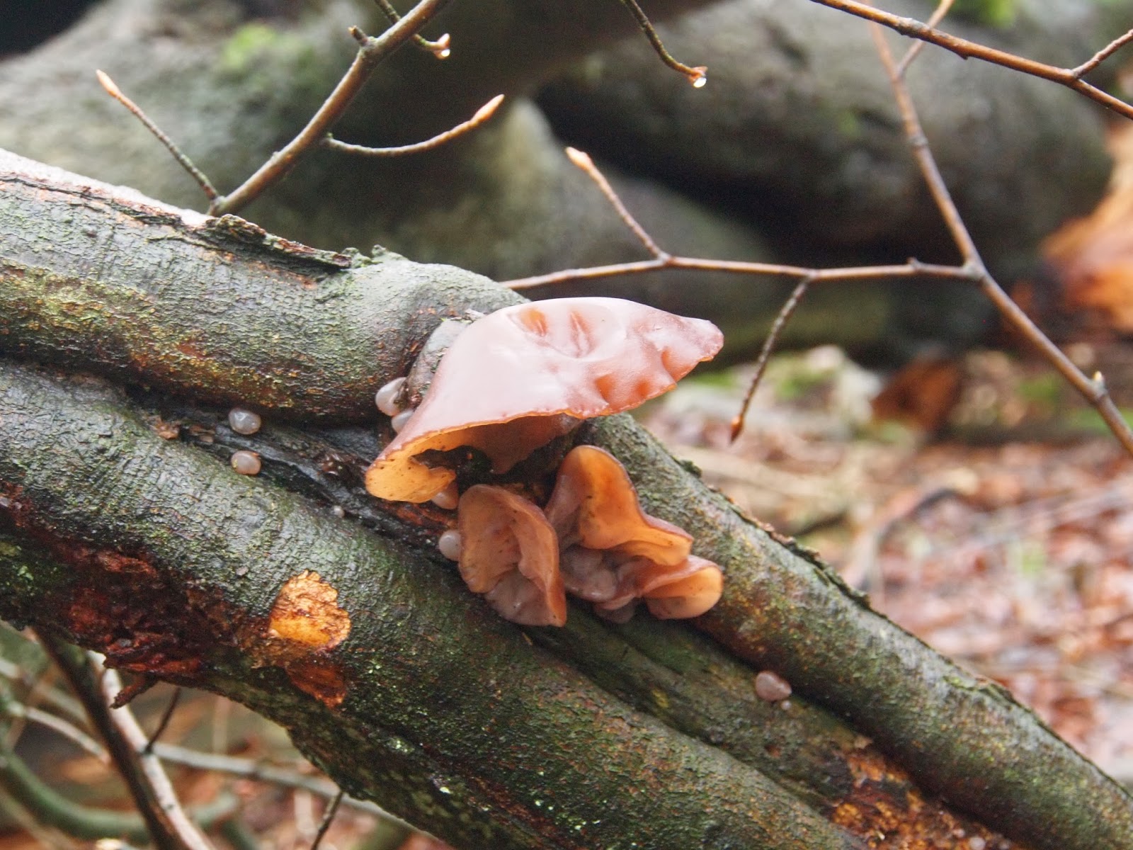 I thought I would leave the best find until last. We came across what we thought was just Witches' Butter but on closer inspection we found these pale warts were parasitising the Exidia glandulosa. They are Heteromycophaga glandulosae, a species first described in 1993 and was initially said to be restricted to southern counties but there are now a few records coming from the northern counties too. They have been described as rare and I can only find a few records online and very little information about them too. Has anyone else seen this as I would be very interested in any other sightings.